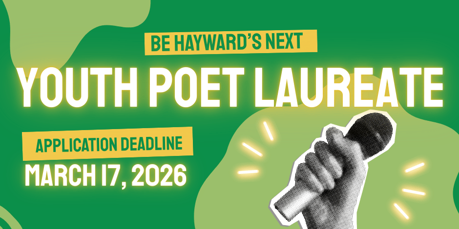 Teens ages 13 to 19 who reside or attend school within the city limits of Hayward as of April 1, 2026 are invited to apply to be considered for a two-year term as Hayward's next Youth Poet Laureate. The term will last from April 2026 through March 2028.